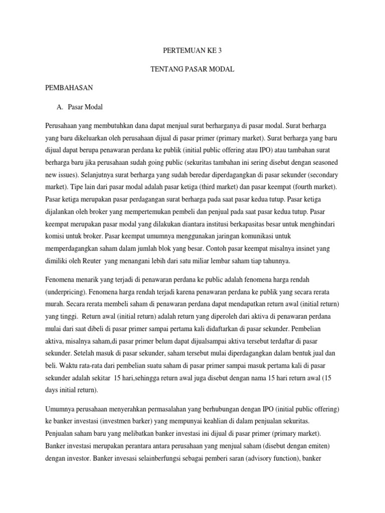 Selain itu, perusahaan publik paling tidak harus memiliki modal yang disetor ke pasar modal minimal rp3 miliar. Efek dapat dikategorikan sebagai hutang dan ekuitas seperti obligasi dan saham. American depository receipt (adr) tanda terima untuk saham dari suatu perusahaan luar negeri yang tercatat dalam suatu bursa di amerika serikat.