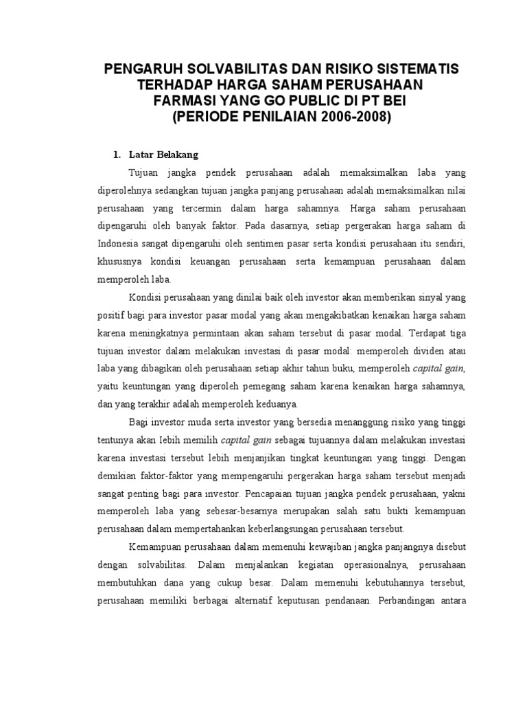 Pengaruh Solvabilitas Dan Risiko Sistematis Terhadap Harga